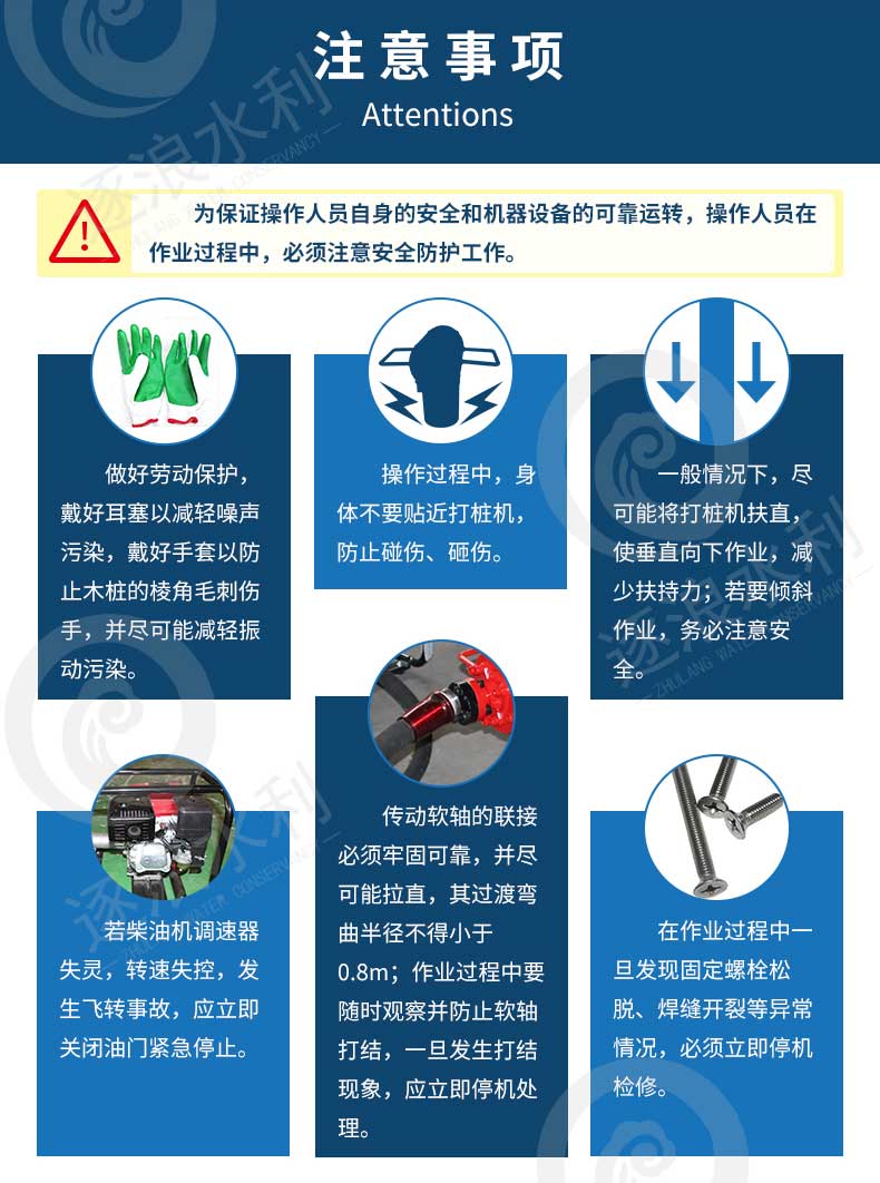 1、由兩名操作人員垂直扶住主機和木樁,使木樁扎入土層。